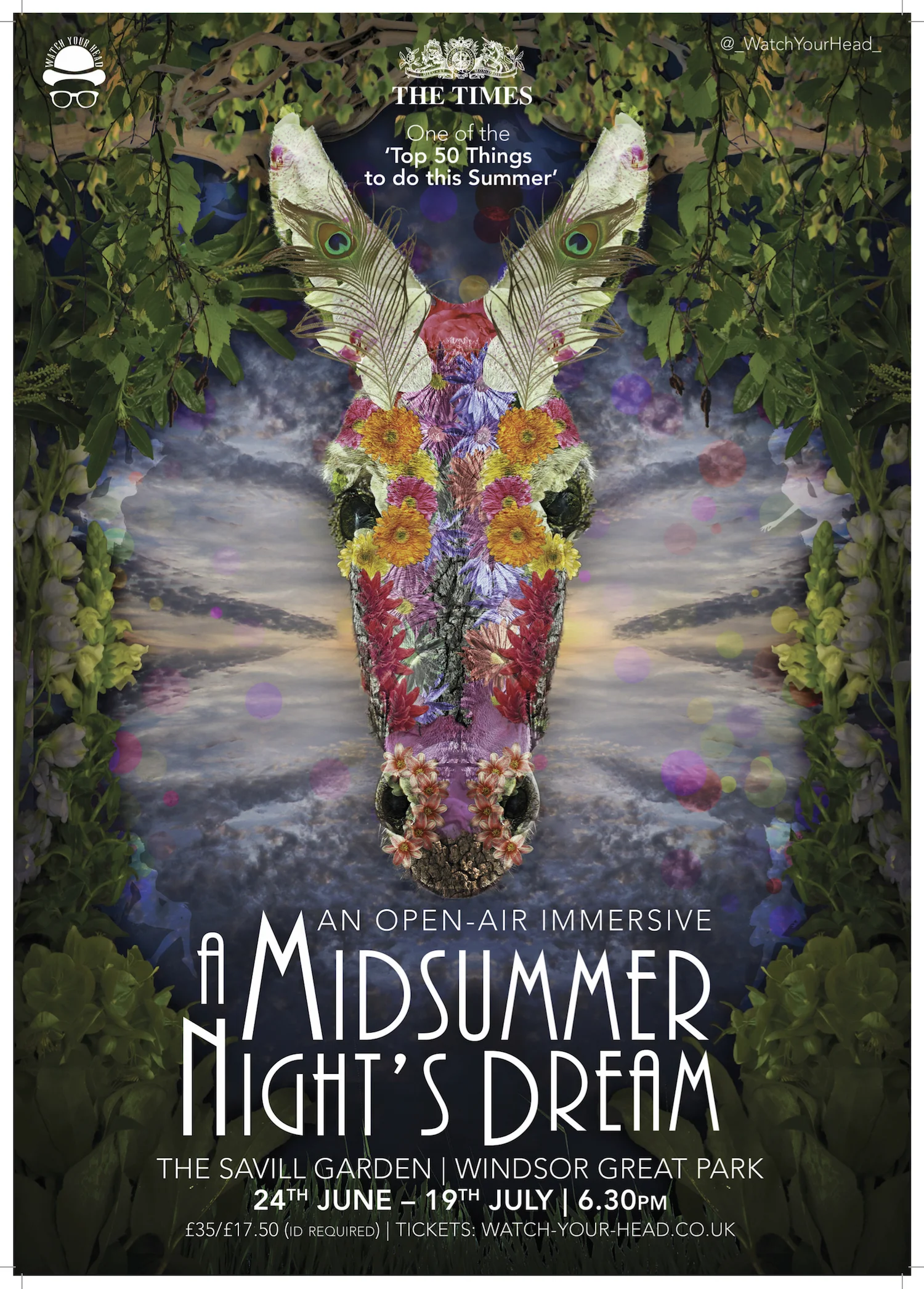In Summer 2015, 12 actors and musicians transformed Britain’s finest ornamental garden into a world of warring ethereal Kings and Queens, star-cross’d lovers and one Bottom with an Ass’s head. The audience followed the action as the plot unfolded around the Great Park. Bringing A Midsummer Night’s Dream to this spectacular setting brought new excitement and accessibility to Shakespeare's classic play.